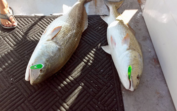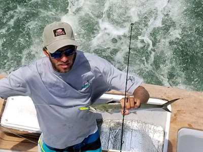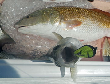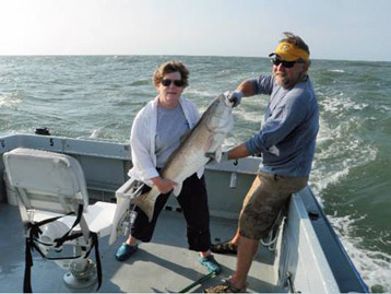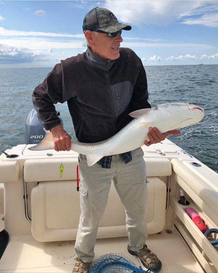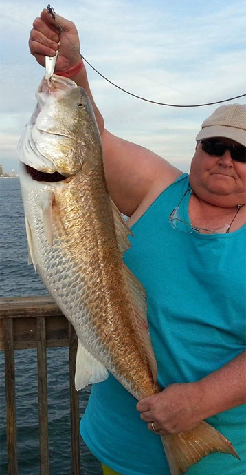 "Thanks for your great products. I’ve sure caught a lot of fish with them! This is a photo taken two weeks ago while taking a group of five people on a charter. The seas were rougher than expected and we had planned to bottom fish. All of our customers were seasick and we decided to head home empty handed. As we approached Port Royal Sound, we saw some birds working near a sandbar and decided to pull some drones through the area. Two minutes later one of the rods bent over and we pulled in this 37” red drum. Estimate weight at 32 pounds. It was the first fish this woman had ever caught! Boy was she excited – seasick and all! Fish was released safely and we headed back to the hill. That fish and your drone spoon sure saved the day!"